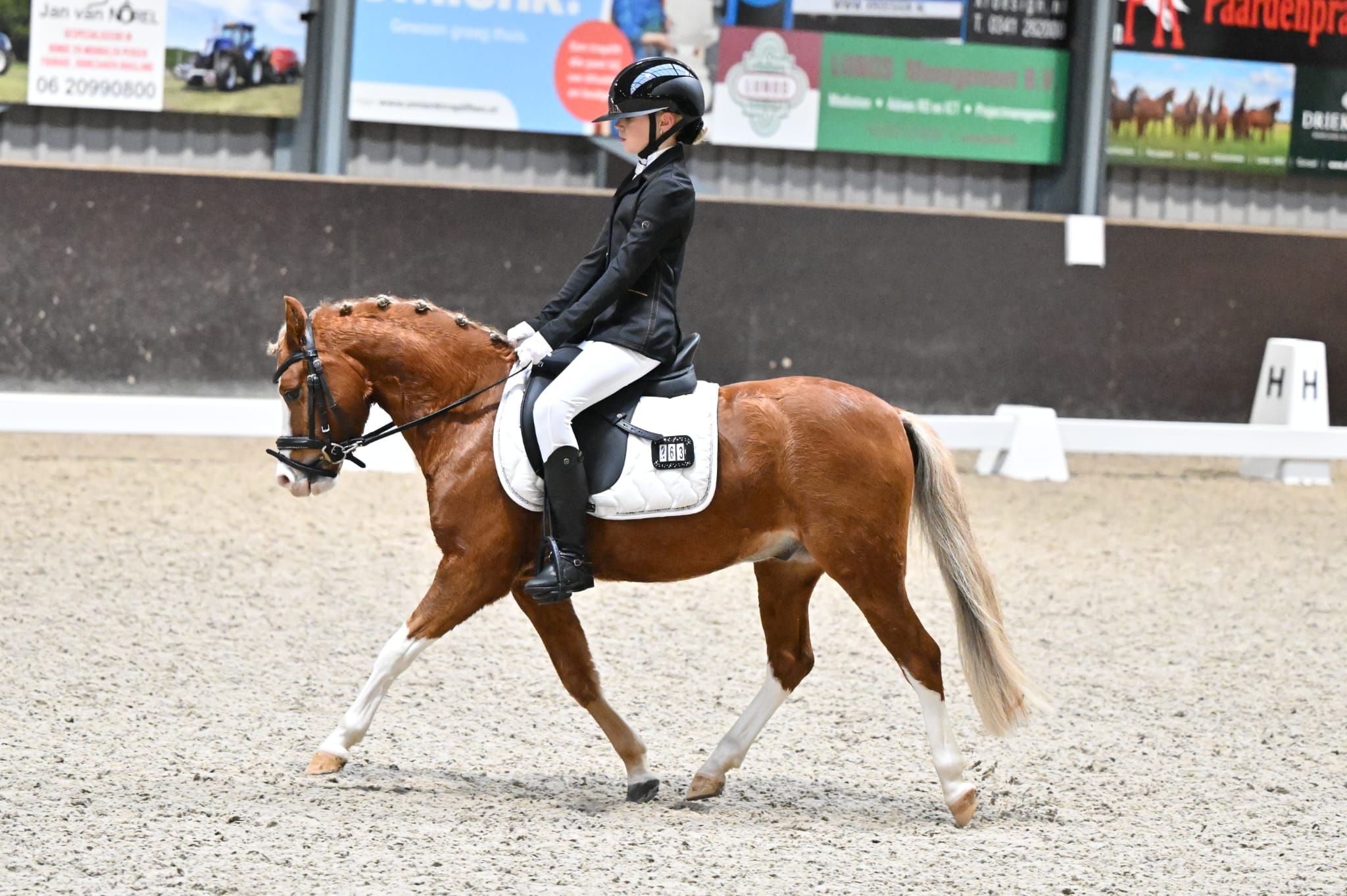 In de gecombineerde klasse L1/L2 dressuur pony’s behaalde Réza Logtenberg twee mooie winstpunten met haar pony Sunny Boy (185,5 en 185 punten).