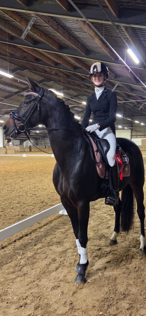Zaterdag 4 oktober maakte Fleur Berkhof haar wedstrijddebuut met Rosa Zelma. In de klasse B dressuur behaalde ze 191 en 180 punten!