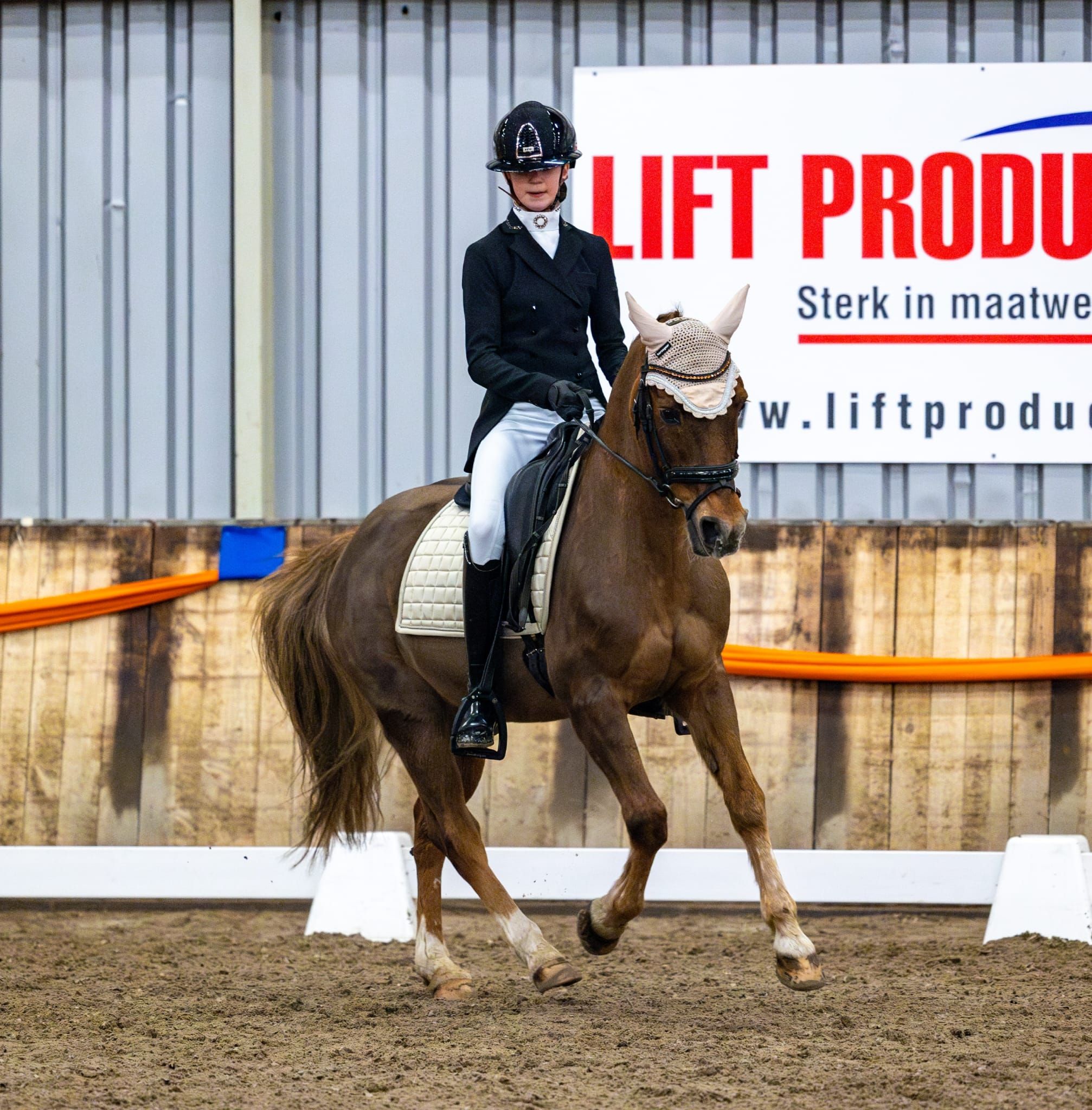 Zusjes Liv en Ize Bruggink kwamen ook aan de start. Liv reed met haar pony Caravita in de klasse M1 dressuur cat. D/E naar een 4e plaats met maar liefst 212,5 punten. Ize reed met haar pony Simba in de B dressuur cat. A/B naar een 2e prijs met maar liefst 211 punten. Beide zusjes hebben alle 3 de selecties zo goed gepresteerd, dat ook zij afgevaardigd zijn naar de Gelderse Kampioenschappen!